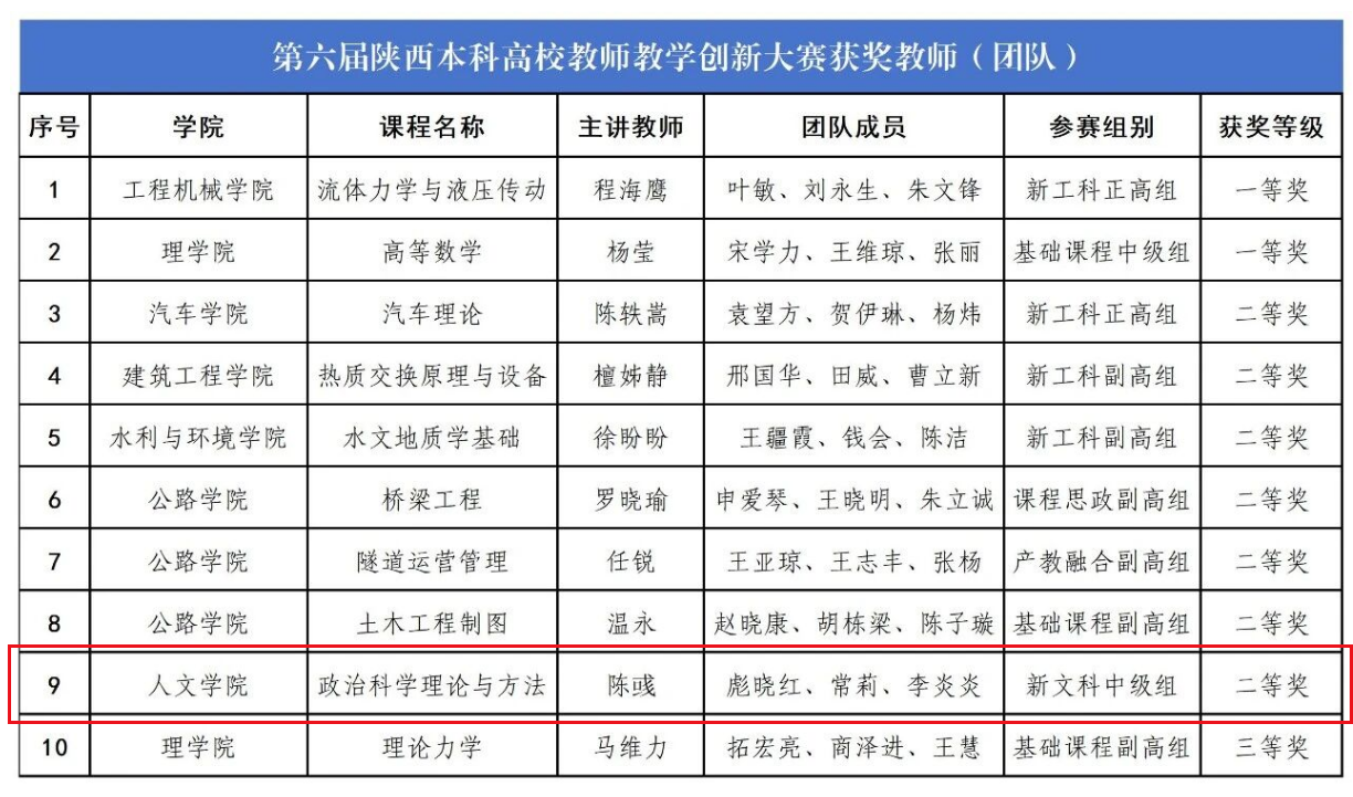 近日,第六屆陜西本科高校教師教學創(chuàng)新大賽評選結果正式揭曉。人文學院公共管理系陳彧教師憑借其主講的《政治科學理論與方法》課程,在新文科中級組的激烈競爭中脫穎而出,榮獲省級二等獎。這一佳績不僅是對陳彧教師個人教學能力與創(chuàng)新實踐的高度認可,也彰顯了人文學院在推動教學改革、提升人才培養(yǎng)質(zhì)量方面的顯著成效。