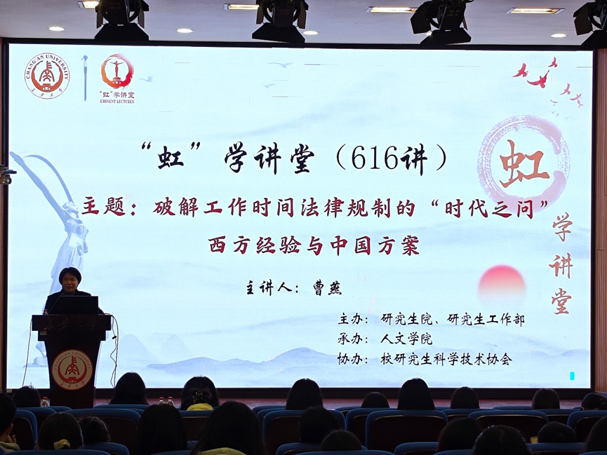 2025年3月18日,人文學(xué)院邀請西北政法大學(xué)曹燕教授于南校區(qū)東院伯聲報(bào)告廳作題為“破解工作時(shí)間法律規(guī)制的‘時(shí)代之問’—西方經(jīng)驗(yàn)與中國方案”的學(xué)術(shù)講座,講座由法學(xué)學(xué)科組長陳蓉教授主持。